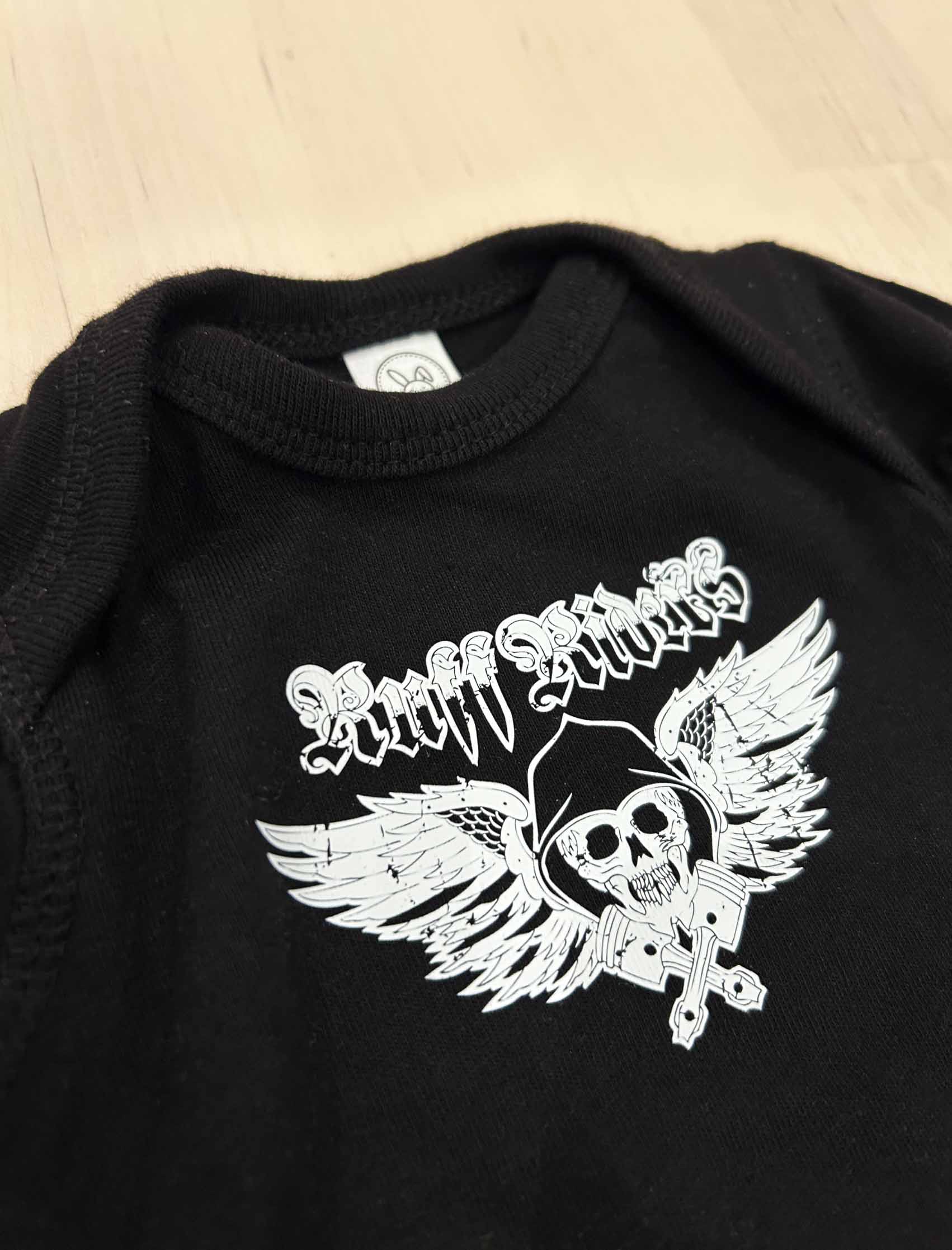 Baby Body, RuffRiders-logo på bröstet. Fin jersey i 100 % kammad ringspunnen bomull